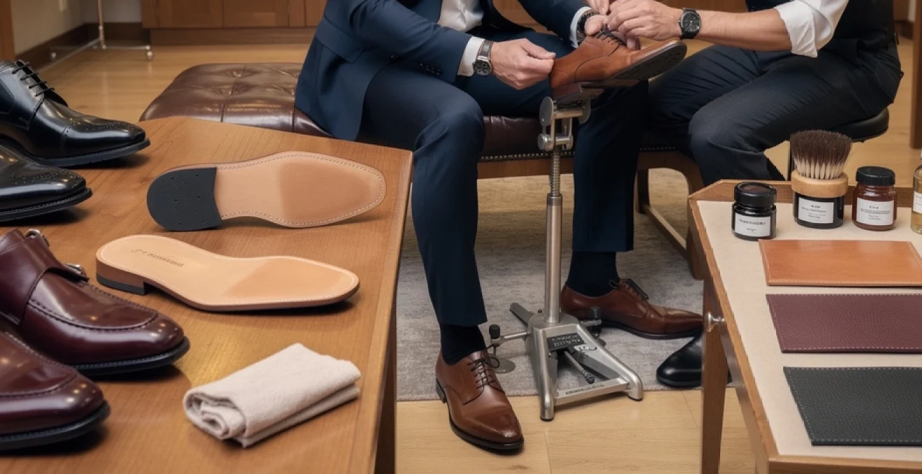 La restauration professionnelle permet de redonner une seconde vie à des chaussures de ville de qualité : ressemelage complet (semelle et talon), changement de bonbout, remplacement de la première de propreté, recoloration ou patine artistique, glaçage… Certains ateliers proposent des services de « spa » pour chaussures, avec nettoyage en profondeur, nourrissage intensif et reprise de la couleur. L’analogie avec l’entretien d’une voiture est parlante : un bon châssis (le montage) et une bonne carrosserie (le cuir) peuvent être entretenus et rénovés plusieurs fois, à condition d’y prêter attention. C’est ainsi que vos souliers deviendront, au fil des années, non plus de simples accessoires, mais de véritables compagnons de route.
