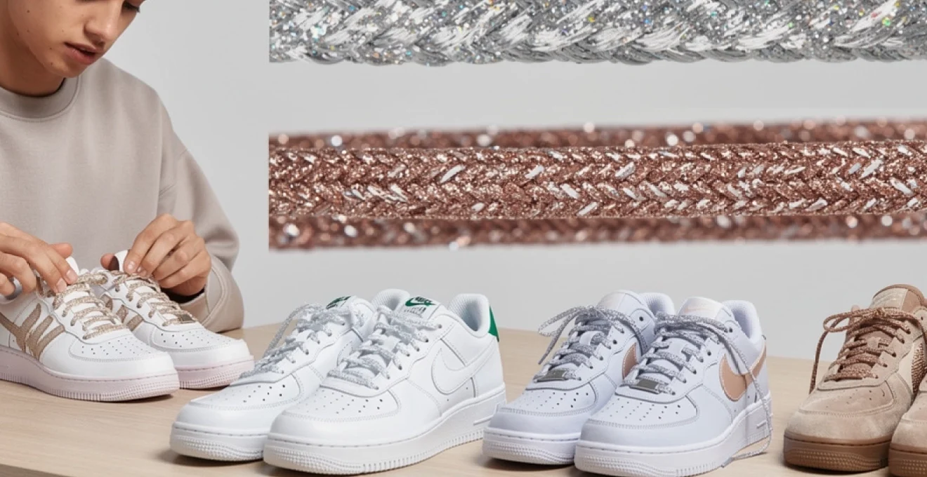 Pour un look streetwear pointu mais mesuré, jouez sur le duo coton mat + paillettes. Remplacez par exemple un seul lacet sur deux par un modèle pailleté (sur des AF1 à double laçage ou des customisations spécifiques) ou utilisez des embouts métalliques sobres pour faire la liaison entre cuir lisse et lacet scintillant. Ce jeu de proportionnalité vous permet de bénéficier du contraste sans tomber dans l’excès.
