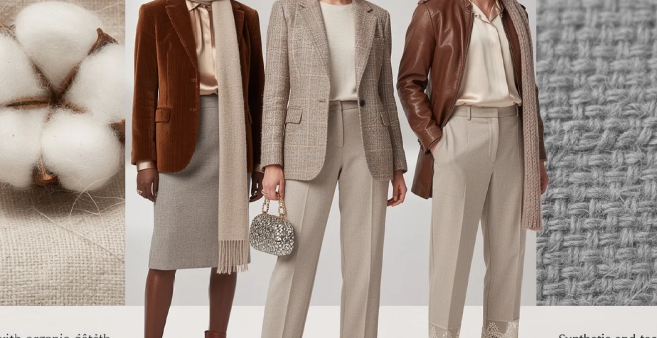 Au printemps, privilégiez des textures intermédiaires : gabardine de coton, denim souple, maille légère, lin mélangé. Ces matières supportent bien le layering, permettant de retirer ou d’ajouter une couche sans rompre l’harmonie. En été, les textures ajourées, les voiles de coton, le lin lavé et les soies légères deviennent vos meilleurs alliés pour laisser circuler l’air tout en créant du relief visuel. À l’automne, on réintroduit progressivement des surfaces plus denses comme le velours, le tweed et les mailles côtelées, qui évoquent immédiatement la saison par leur simple toucher.