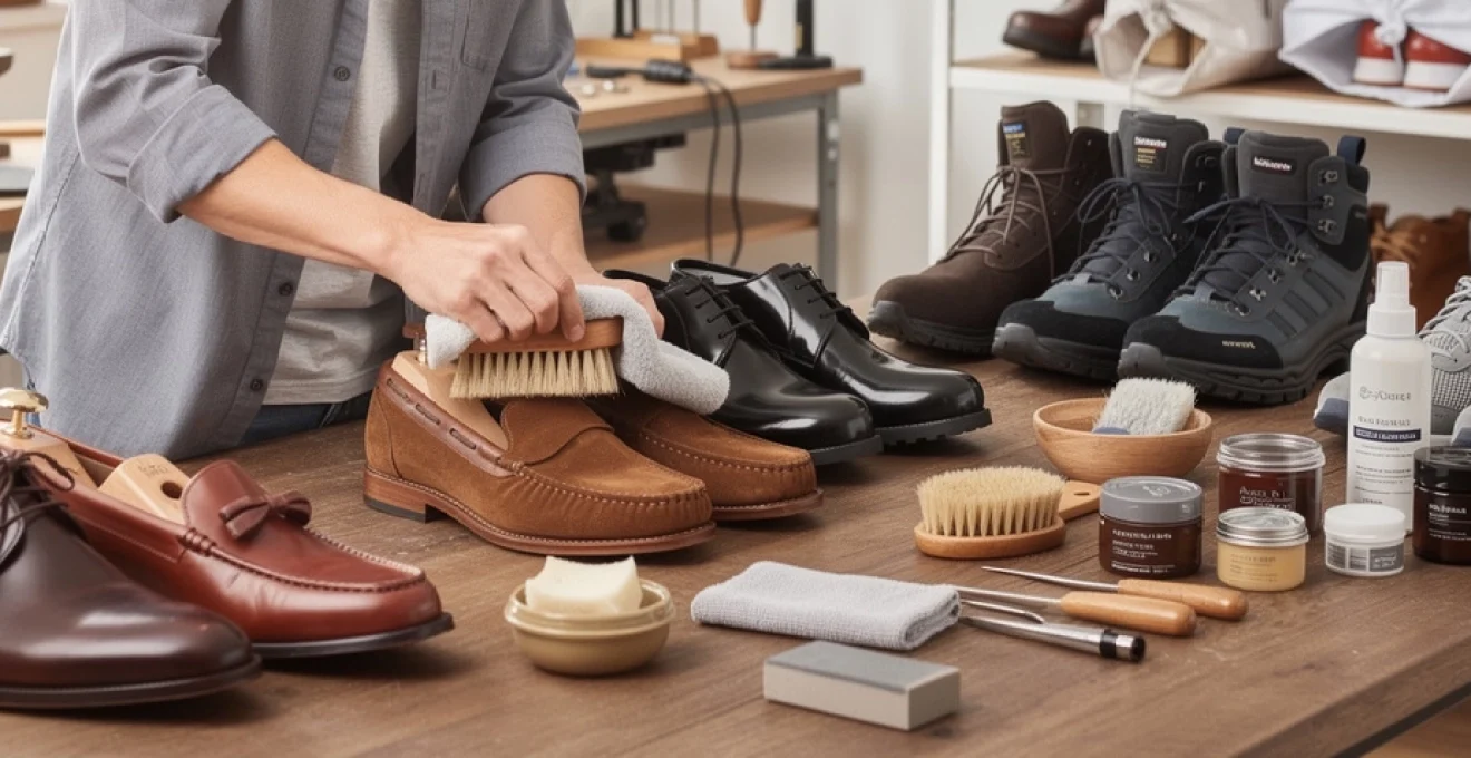 Les produits d’entretien spécialisés se déclinent en plusieurs familles : nettoyants (savon glycériné, lotions nettoyantes pour sneakers, gommes pour daim), produits nourrissants (crèmes, cirages, baumes incolores), protecteurs (sprays imperméabilisants, rénovateurs anti-taches) et accessoires (brosses de différentes duretés, chiffons, embauchoirs). Pour éviter d’encombrer vos placards, privilégiez des formulations polyvalentes mais de bonne qualité, même si leur prix unitaire est légèrement plus élevé : vous en utiliserez moins et leurs effets seront plus durables.