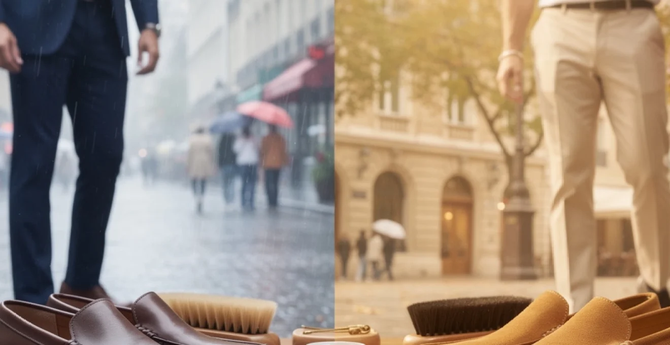 Dans le Sud et sur le pourtour méditerranéen, où l’ensoleillement est fort mais où les épisodes pluvieux peuvent être violents, le daim tire étonnamment bien son épingle du jeu pour la majorité des journées. Des mocassins en veau velours clair, associés à des semelles gomme et à un entretien rigoureux, offriront un confort supérieur pendant de longs mois. Le cuir lisse, plus sensible aux craquelures induites par les UV et la chaleur sèche, gagnera à être réservé aux occasions formelles, aux soirées et aux saisons plus douces (automne, fin d’hiver), en veillant à le nourrir plus fréquemment pour éviter le dessèchement.