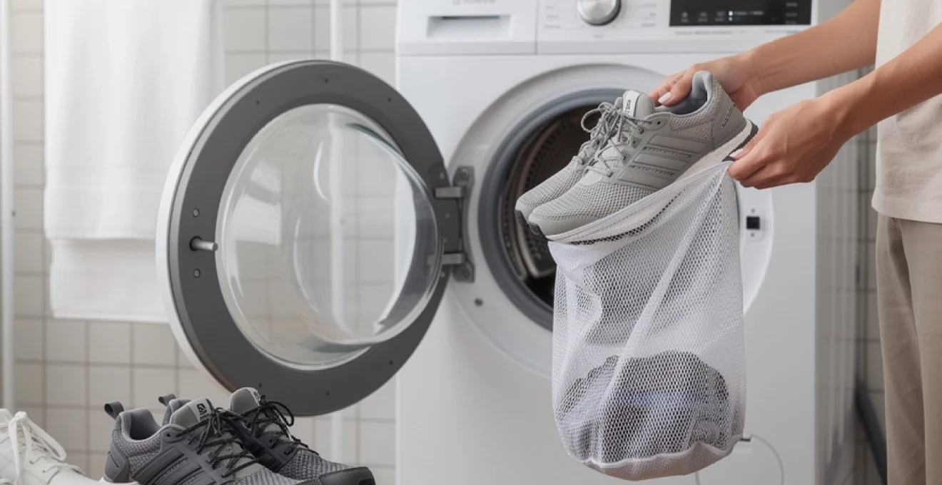 Pour limiter les chocs et les frottements entre les chaussures et le tambour, l’usage d’un sac de lavage en filet polyester haute densité est fortement recommandé. Ce type de sac agit comme une barrière mécanique qui amortit les impacts, tout en laissant circuler l’eau et la lessive. Placez une seule paire par sac et, idéalement, complétez le tambour avec quelques serviettes éponge afin d’équilibrer la charge et de réduire le bruit.