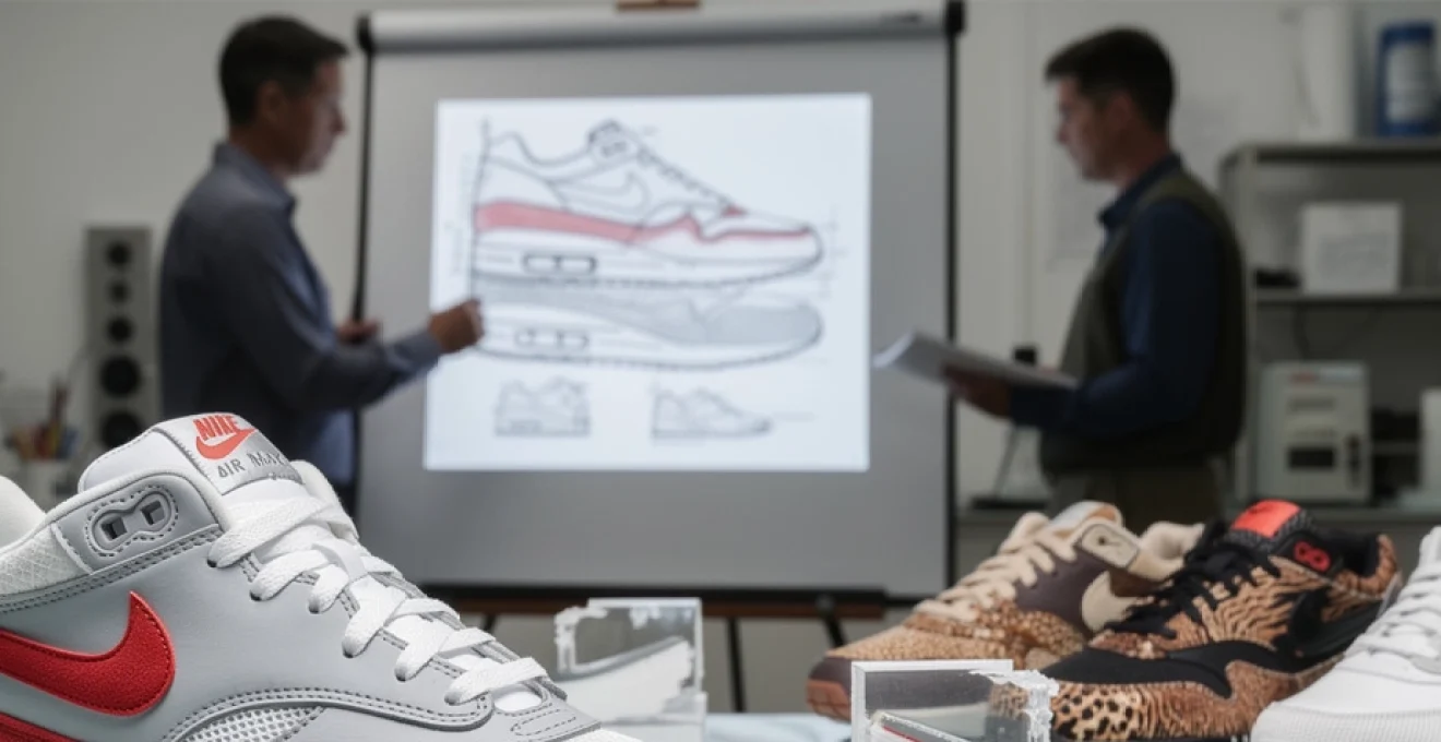 Au milieu des années 1980, l’ADN design de Nike est fortement marqué par des figures comme Bruce Kilgore, créateur de la Air Force 1, et Rob Strasser, stratège clé du développement de la marque. Leurs modèles phares reposent sur des lignes relativement sobres, des silhouettes pleines, des semelles épaisses mais visuellement compactes. La technologie reste le plus souvent cachée, l’esthétique privilégiant une forme de minimalisme fonctionnel. Dans ce contexte, la proposition de Tinker Hatfield de découper littéralement la semelle pour laisser apparaître un coussin d’air sous pression fait figure de véritable hérésie.