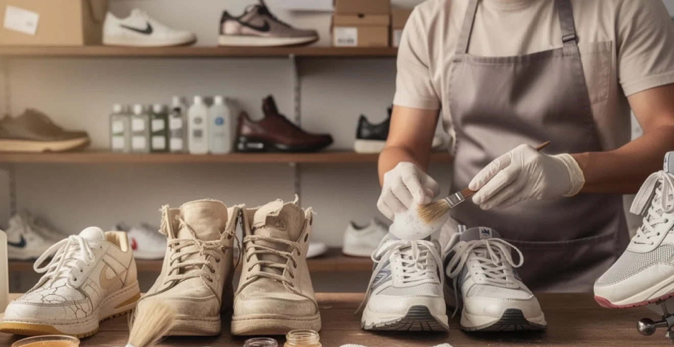 Une fois le nettoyage achevé et les matériaux parfaitement secs, commence la phase la plus délicate de la rénovation de baskets anciennes : la réparation. C’est à ce stade que se joue l’équilibre entre conservation et transformation. L’objectif n’est pas de « customiser » mais de restituer, autant que possible, l’apparence et les sensations d’origine, tout en stabilisant les zones fragilisées. Selon l’état des chaussures, la palette d’outils va du simple baume nourrissant jusqu’à la reconstitution complète de semelles ou la reteinture intégrale de panneaux en cuir.